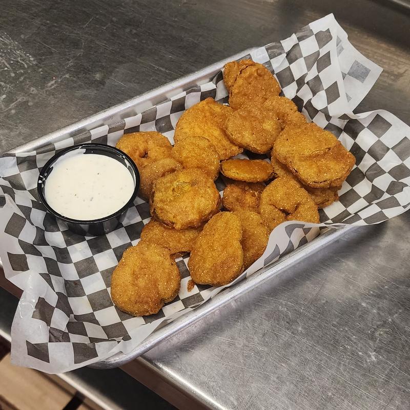 Thin cut dill pickles, battered & deep-fried served with our house made ranch.